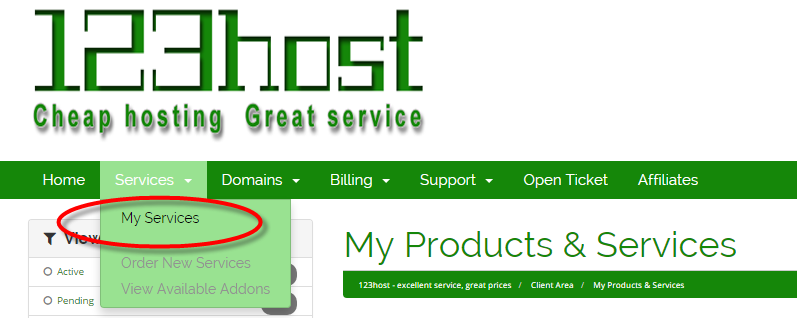 Click Services and then My Services in the dropdown menu