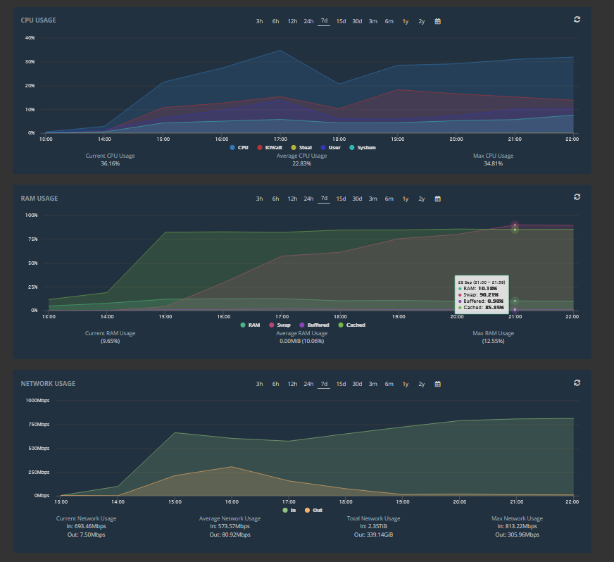 The server is running hard at the moment – the graphs flatten because certain things like RAM usage reach a specified limit to prevent everything bogging down.